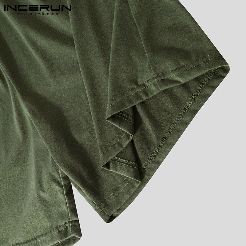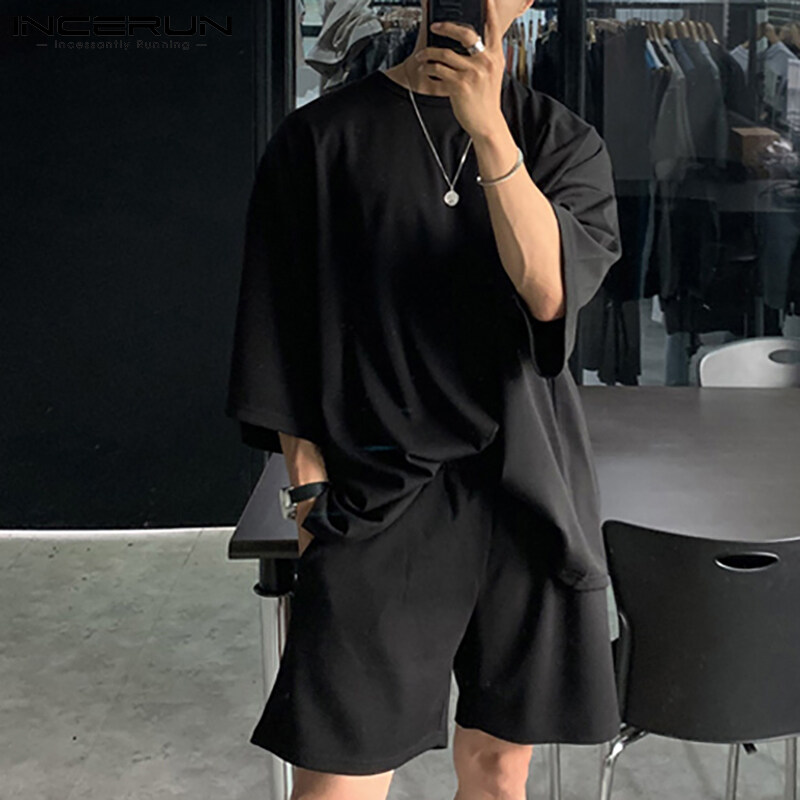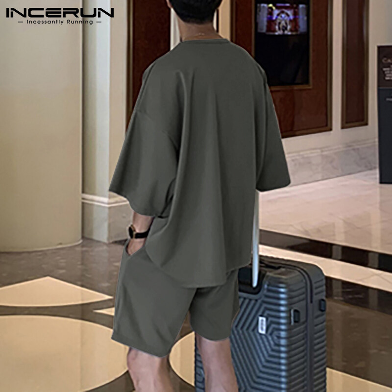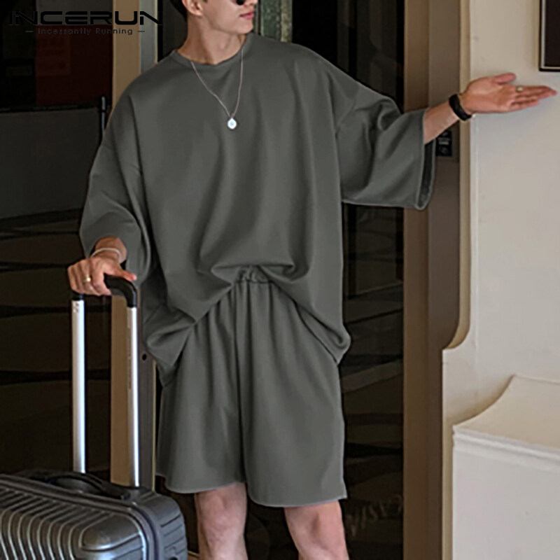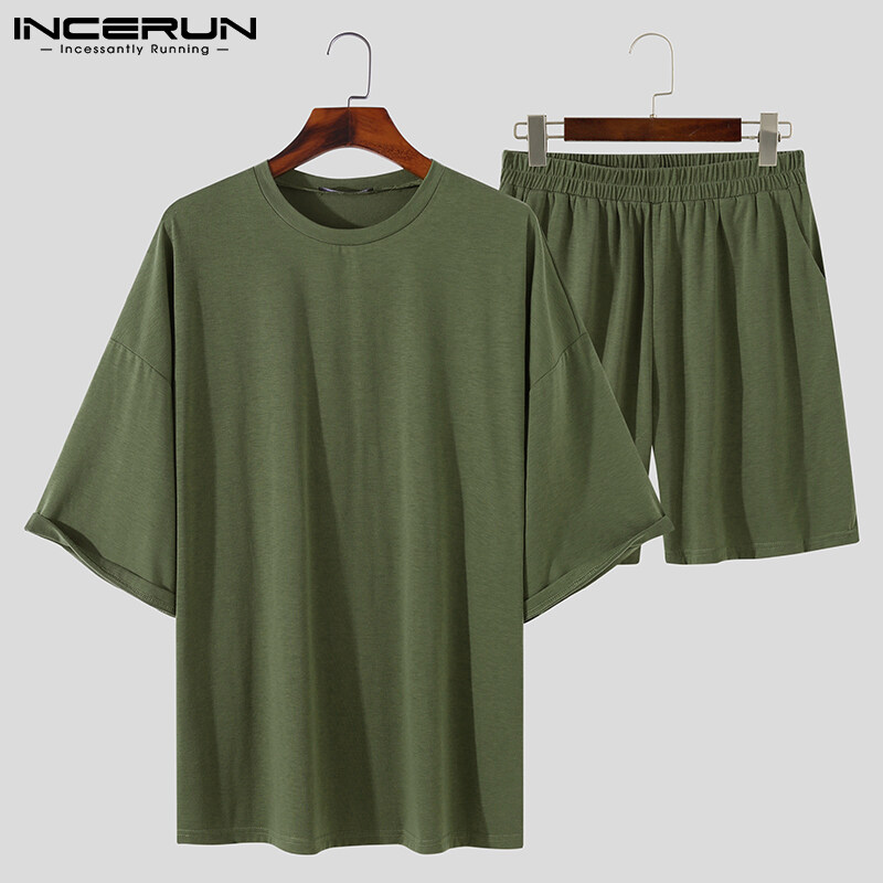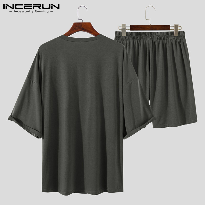 Beehoo INCERUN男式短袖软睡衣T恤短裤套装睡衣套装休闲套装